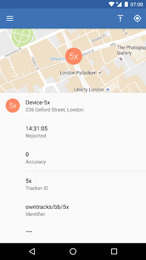 OwnTracks le permite realizar un seguimiento de su propia ubicación.Puede construir su diario de ubicación privada o compartirlo con su familia y amigos.OwnTracks es de código abierto y utiliza protocolos abiertos para la comunicación, por lo que puede estar seguro de que sus datos se mantienen seguros y privados.