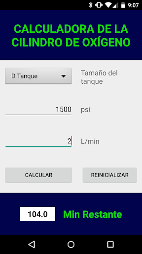 Calcular el número de minutos restantes en un tanque de oxígeno basado en el tamaño del tanque , la presión y la velocidad del flujo continuo. La siguiente ecuación se utiliza para determinar la duración restante de flujo :