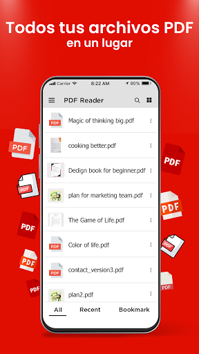 PDF Reader admite la búsqueda y visualización de archivos PDF en su dispositivo.