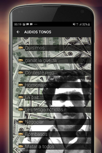Escucha los tonos que mas te gusten de Pablo Escobar, frases de Pablo Escobar para que puedas usar de ringtone de llamada o mensajes para tu dispositivo móvil.