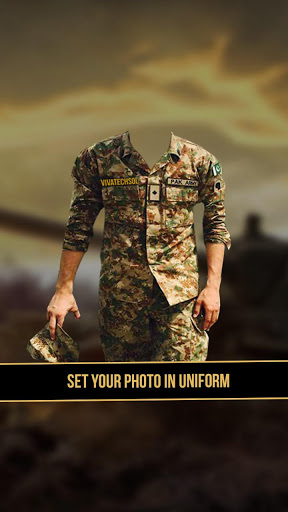 - En un editor de fotos de traje militar selecciona una foto de gallary o se puede tomar con la cámara del teléfono celular.