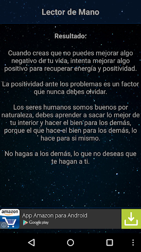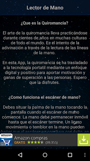 Disfruta de esta App gastando bromas a tus amigos! Esta App simula un escáner en pantalla que lee la mano emitiendo unos realistas efectos de sonido y visuales y mostrando unos resultados en pantalla. Los resultados serán siempre frases motivacionales y que aporten ganas de superación a las personas.