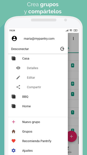 Puedes crear tantos grupos como quieras para llevar un control separado de distintos hogares o eventos, y dentro de cada grupo puedes crear diversas listas como 'Despensa', 'Nevera' o 'Congelador'. También puedes añadir productos al checklist de la lista de la compra desde cualquier lugar con tan sólo un par de toques, o lo que es mejor, ¡dejar que Pantrify