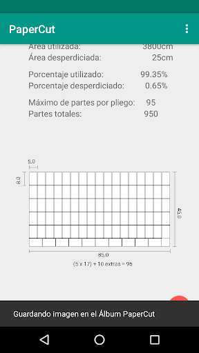 Modifica el tamaño de tu formato, el cual puede estar en milímetros, centímetros, pulgadas, y metros; ingresa la medida de tus piezas gráficas y calcula cuántas puedes obtener en cada pliego, y cuántas por el total de pliegos que vayas a utilizar. Con estos datos, PaperCut te genera el porcentaje utilizado de cada pliego, además del porcentaje de merma; ésta aplicación crea rápidamente un esquema de corte, que puede ser modificado para un mayor aprovechamiento del sustrato.