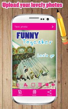 App Photo Text On Image In Style as same as Text Camera your personal font studio, photography lovers! Write Text on Pictures is a new app free "text photo editor" which lets you write on pictures of your cherished moments, add cute quotes, love messages and watermarks! If you are a fan of apps that let you "write words on pics", picture decorators, editors with stickers and stamps, you are going to adore this “text on pictures” photo editing, download this free text camera photo now! Edit the text camera on your cute pics with this photo editing app!