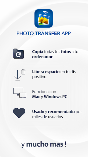 Esta aplicación te permite transferir, compartir y respaldar fotos y vídeos de tu dispositivo Android en tu ordenador, así como intercambiar fotos desde y hacia otro Android, iPhone o iPad utilizando tu red WiFi.