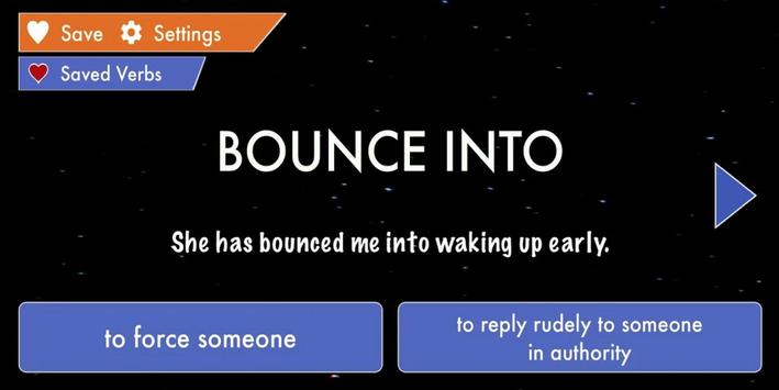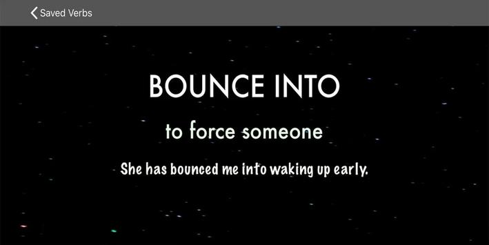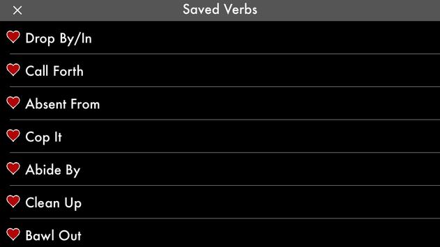 You can save the verbs with 'Save' button and you can check these verbs with expressions and sample sentences, whenever you want.