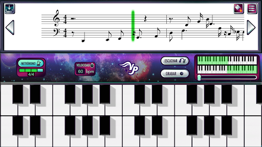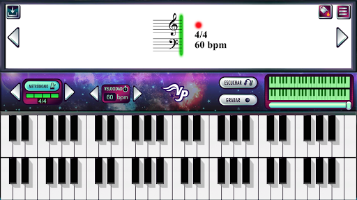 - Grabar tus propias melodías, a medida que vas tocando el piano podrás ver las notas aparecerán en la partitura.