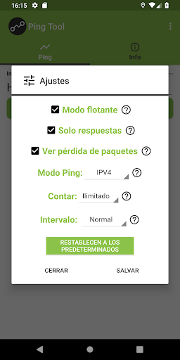 Utilizar ping en direcciones IPV6 o IPV4 (IPV6 en Android 8.1 o INFERIOR);