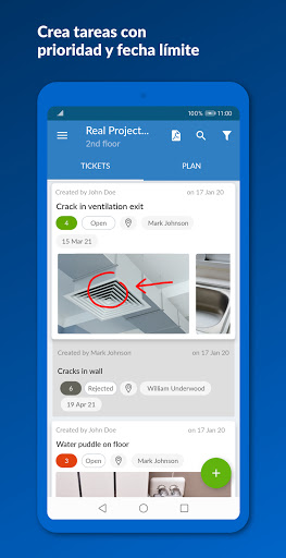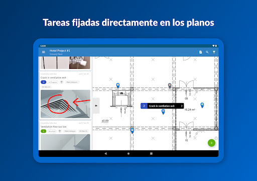 La sincronización continua entre el ordenador, teléfonos móviles y tablets mantienen a tu equipo informado sobre todos los cambios en la obra a tiempo real, ayudándote a estar al día del estado de las diferentes tareas y defectos.