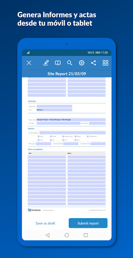 Crea informes en PDF o Excel totalmente personalizables y exporta tu parte de control de obra, una lista detallada de defectos o un documento entero de traspaso en solo unos cuantos clics. Crear informes eficientes evita la duplicación del trabajo en la oficina una vez acabadas las inspecciones en obra.