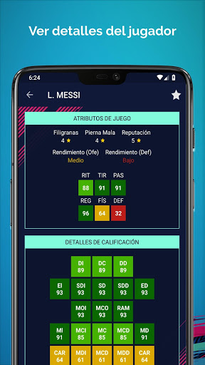 Accede a los datos detallados del jugador. Con esta aplicación complementaria es posible ver las calificaciones potenciales de los jugadores para el Modo Carrera.