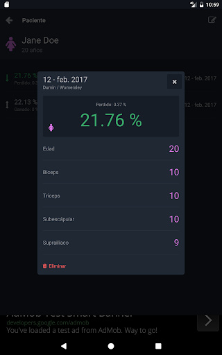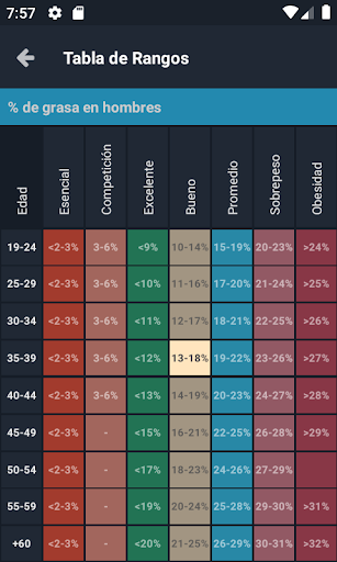 Con Plixi, puedes obtener el porcentaje de grasa corporal usando la fórmula de Durnin / Womersley para personas con porcentaje de grasa mayor a 12% hombres y 15% mujeres, ó la fórmula de Jackson / Pollock para personas con porcentaje de grasa menor a 12% en hombres y 15% mujeres.