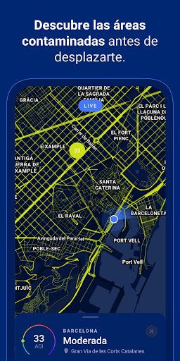 MAPAS EN DETALLE: Los mapas te permiten conocer en detalle la contaminación en cada calle ¡en tiempo real! Encuentra el mejor trayecto para ir a trabajar, descubre los parques más limpios para hacer deporte - todo esto en un estupendo mapa fácil de leer.