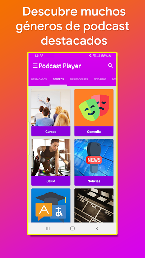 • Explore podcasts famosos por categorías (Cursos, Comedia, Salud y forma física, Noticias, Aprendizaje de idiomas, Sociedad, TV y cine, Educación, Lugares y viajes, Negocios, Diseño, Audio libros ...).