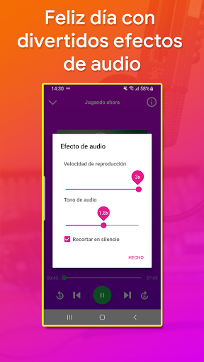 • Establezca la velocidad de reproducción, el tono de reproducción, recorte silencioso al reproducir el episodio.