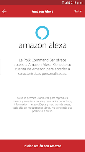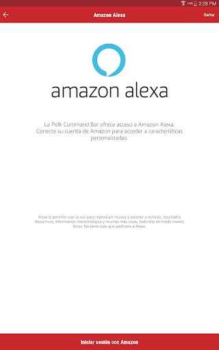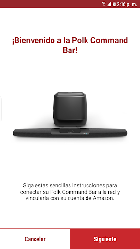 Le ayuda a conectar la Polk Command Bar a su red Wi-Fi y a vincular su cuenta de Amazon para que pueda usar los servicios de voz Alexa.