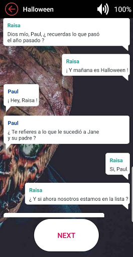 Con Historias - Chat Stories, juego de historias interactivas en español, puedes leer increíbles historias de miedo GRATIS sin pausas. Estos son espeluznantes y absorbentes horrores que te mantendrán leyendo todo el día. Lee una gran cantidad de historias de chat, comedias, películas de suspenso y también textos de fantasía con tus amigos. Historias - Chat Stories se trata de breves historias de chat, de Halloween que te mantendrán leyendo durante horas. Divertidas y románticas historias de chat en español, de amor, de miedo, de terror, de Halloween y historias de textos de suspenso...