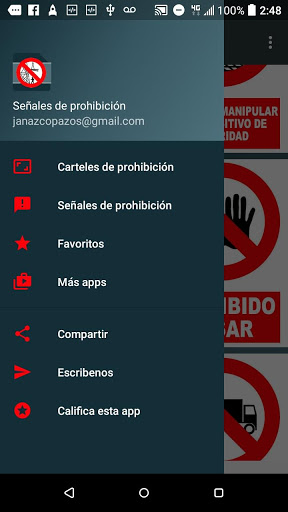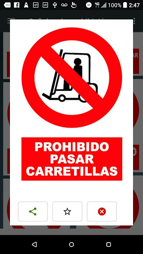Permite agregar a favoritos las señales de prohibición más consultadas y compartirlas por correo, WhatsApp, entre otros. Convirtiéndose así en una gran herramienta infaltable para la seguridad en tu dispositivo móvil.