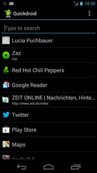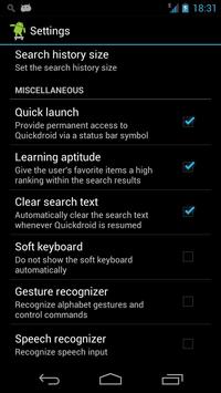 - Preference option to exit Quickdroid by pressing the back key once even if the soft keyboard is visible