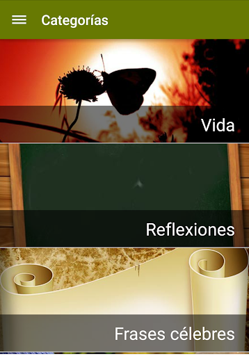 * Hemos creado diferentes categorías: citas y frases célebres, frases de la vida, frases de reflexión y frases bonitas, para que elijas los diseños que desees ver en cada momento.