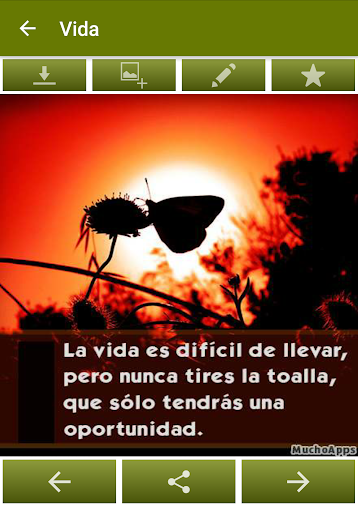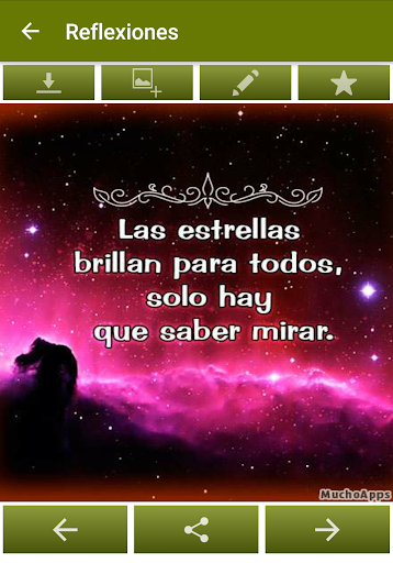 * Las frases o imágenes que más te gusten, podrás compartirlas a través de tus aplicaciones de mensajería preferidas o mediante la aplicación que tú decidas. Tan sólo necesitarás tener instalada la aplicación a través de la que deseas compartir la imagen.
