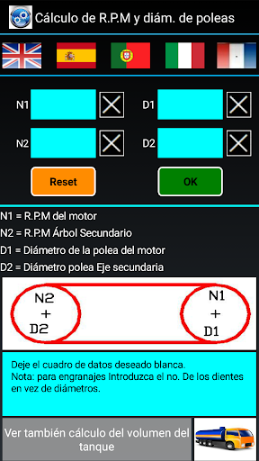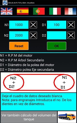 Deje el cuadro de datos deseado blanca. Nota: para engranajes Introduzca el no. De los dientes en vez de diámetros.