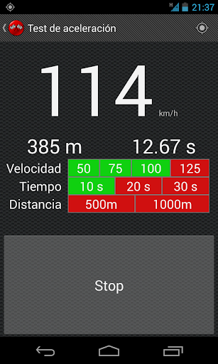 •Tiempo por vuelta: se te pedirá que establezcas un punto de salida/meta, y cada vez que se detecte, una empezará una nueva vuelta. Al detener la prueba, se muestran algunas estadísticas: