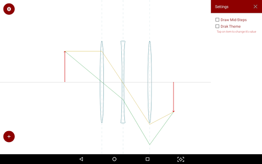 Lente convexa, lente cóncava disponible como objetos reflectantes. Coloque su objeto y lentes, automáticamente hará una imagen del objeto.
