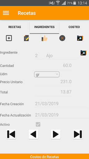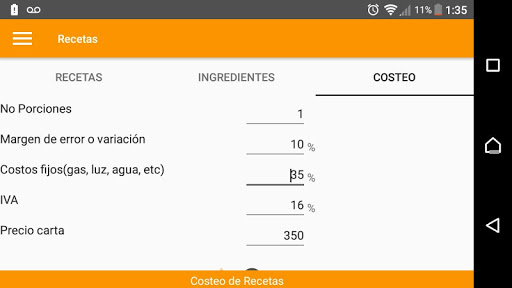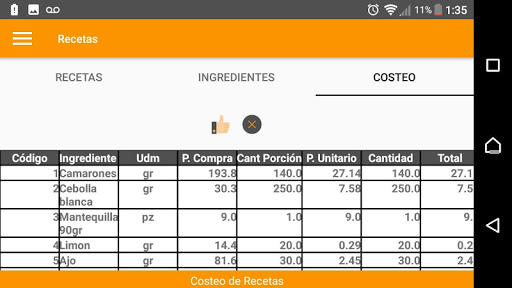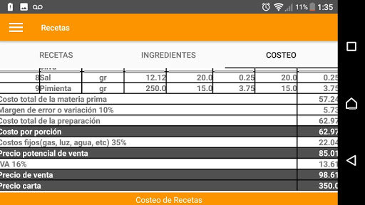 Paso 4: Visualizar costeo en la Pantalla Receta/Costeo.