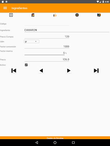 Paso 3: Asignar los ingredientes del paso 1 en la pantalla Receta/Pestaña Ingrediente.