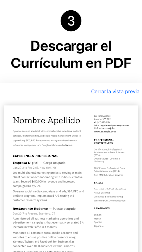 - Acceda a una vista previa de su currículum en cualquier momento