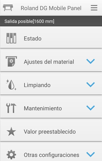 1: Roland DG Mobile Panel debe tener activada la conexión Bluetooth en su Smartphone o Tablet.