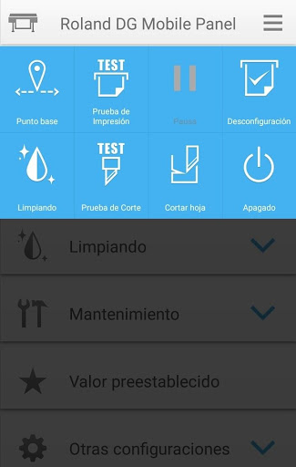 Además de un panel de control integrado, el nuevo Roland DG Mobile Panel le permite realizar funciones de panel de control de la impresora/cortadores desde su Smartphone o Tablet a través de una conexión Bluetooth. Esta innovadora característica ofrece una completa interfaz in situ o remota (dentro de un radio de alcance) de la impresora. Reciba actualizaciones de estado o bien realice funciones de gestión de producción, impresiones de prueba u operaciones de limpieza.