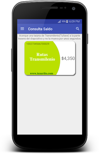 * Consulta de saldo de tarjetas Transmilenio Tullave(Solo dispositivos con soporte NFC)