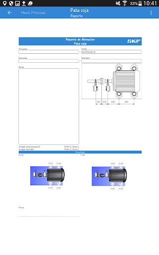 • Informe automático de medición: los informes de medición generados automáticamente brindan una descripción completa del proceso y de los resultados de la medición de pata coja. Los informes pueden personalizarse con notas adicionales, una fotografía de la máquina, una firma, y pueden compartirse de manera fácil a través del correo electrónico o servicios en la nube.