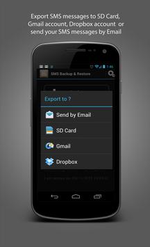 Copia de seguridad y restauración de sus mensajes SMS a la tarjeta SD, cuenta de Gmail o una cuenta de Dropbox.