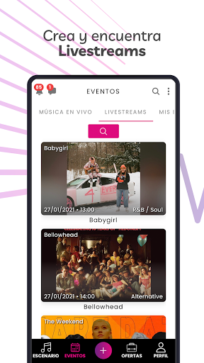 ·ENCUENTRA Y CREA transmisiones de música en vivo, eventos de música, y clases con expertos de la industria sobre instrumentos o temas de interés. Compra boletos y no te pierdas tus conciertos favoritos.