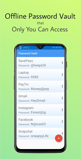 SavePass es un administrador de contraseñas sin conexión que le permite almacenar contraseñas de todas sus aplicaciones y servicios. So no se preocupa por las contraseñas olvidadas.El SavePass Administre sus contraseñas.