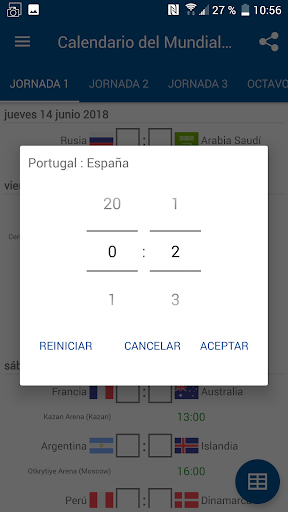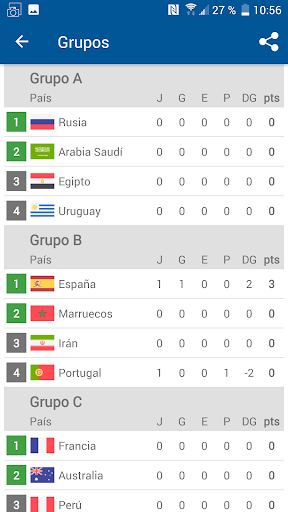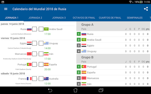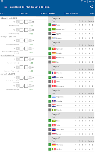 Solo necesita completar sus propios resultados de las coincidencias, y la propia aplicación crea todas las tablas del grupo y calcula qué equipos entrarán en los playoffs.