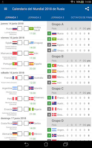 También la aplicación tiene todo el calendario de partidos (hora y lugar).