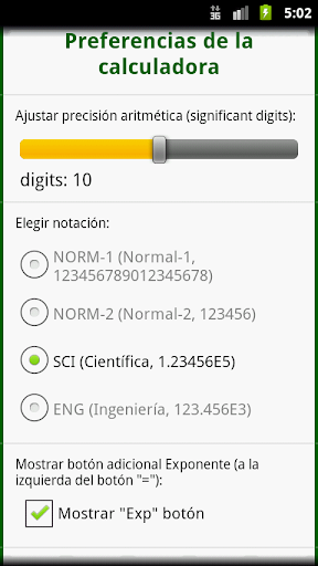 * El redondeo de los resultados se puede ajustar a entre 5 y 15 dígitos. Las notaciones disponibles son: Normal (NORMal), Científica (SCIentific) e Ingeniería (ENGineering).