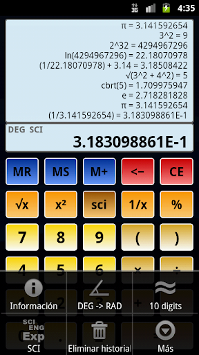 * Calculadora 3 evalúa expresiones matemáticas bajo la consideración de las convención algebraica "cálculo de paréntesis y corchetes antes de potencias y raíces, antes de multiplicaciones y divisiones, antes de sumas y restas".