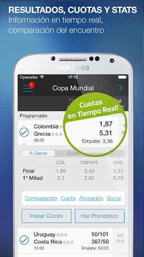 Con Onside te damos acceso a fútbol internacional incluyendo cobertura total de la Copa Mundial de fútbol FIFA 2014. Obtén estadísticas avanzadas para ayudarte a hacer apuestas deportivas informadas. Aparte de tener estadísticas avanzadas en tus manos, Onside también es una comunidad de apuestas deportivas activa, donde puedes hacer tus pronósticos y ver los pronósticos de una comunidad de expertos en apuestas deportivas. Con millones de pronósticos deportivos realizados, somos fácilmente la comunidad más grande de este tipo en el ámbito móvil de hoy. Somos una comunidad de deportes únicamente, construida por apostadores deportivas que buscaban crear la mejor experiencia.