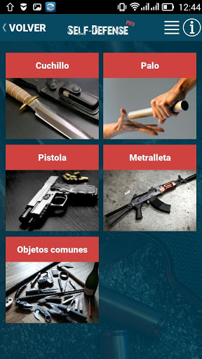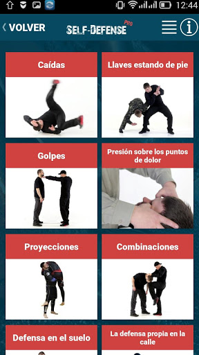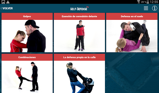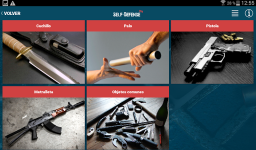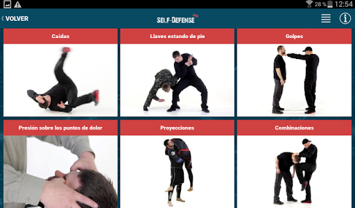 La aplicación tiene una gradación de técnicas de defensa personal para mujeres y hombres, así como el trabajo con cualquier tipo de arma.