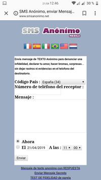 Envías un mensaje de TEXTO/SMS Anónimo para denunciar una infidelidad, declarar tu amor, hacer bromas, sorpresas... sin dejar rastros ni evidencias en el teléfono del destinatorio.