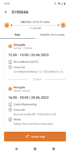 - Detalles de carga y paradas.