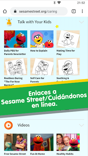 • Integrado con los recursos de Cuidándonos Unos a Otros de Sesame Street en línea*