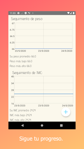 El control de IMC, IMG y peso te permite seguir tu progreso hacia tu objetivo de salud a diario 📊.