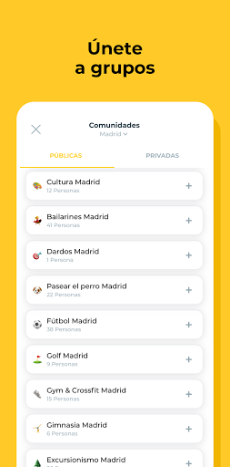 👉 Mantente en contacto con personas de la ciudad con los mismos hobbies, barrios y grupos. Si echas de menos algún grupo, pídenos el que quieras.